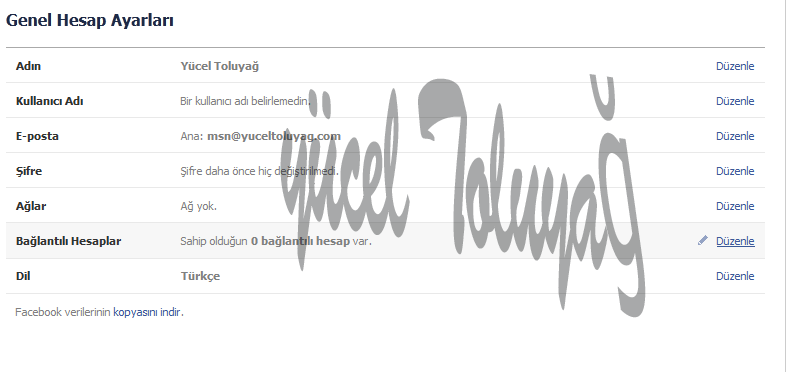 # Adın => Bu kısımda adımızı soyadımızı değiştirebildiğimiz gibi,kendimize birde kısa ad alabiliyoruz.Kısa ad örneği facebook.com/yuceltoluyag gibidir.Normalde orada şu yazar facebook.com/profile.php?id=100003355757722 bu sayede sizi facebookta bulamayan arkadaşlarınıza bu kısa adresi vererek işinizi kolaylaştırabilirsiniz.